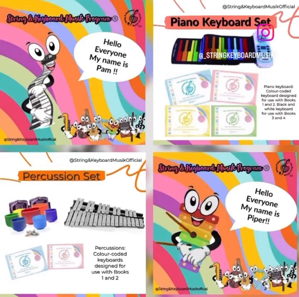 Percussions: Colour-coded keyboards designed for use with Books 1 and 2
